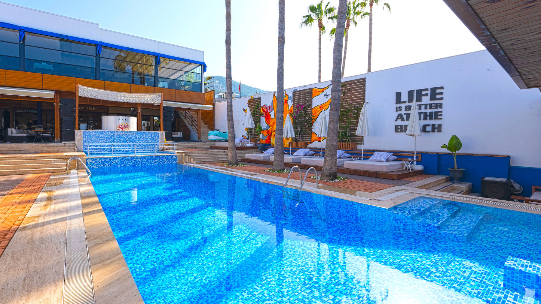 Havana Beach Club was established in 2007 at the western entrance of Alanya Beach, called the Dinek area, and is a delightful facility complete with an outdoor pool and children's pool on the seafront. In addition, there are playgrounds for children and resting areas for young people where they can easily access the pool and beach facilities.